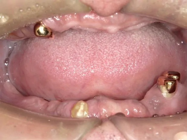 当初は現在の義歯の調整を試みましたが、患者様が求める快適さには届かないと判断。